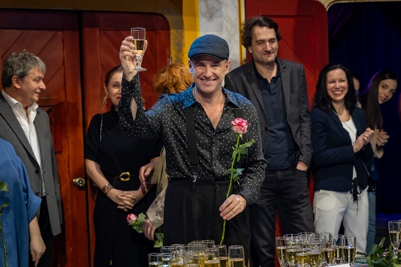 A premier utáni ünnepségen elsőként Szente Vajk, a teátrum főrendezője köszöntötte az alkotókat. „Egy olyan műfajból, ami több száz éves múltra tekint vissza, és nagyon színészközpontú, abból csak olyan rendezői színházat lehet csinálni, ami szintén ezt az elvet követi. Ehhez nagyszerű színészek és egy kiváló főszereplő kell, valamint egy remek csapat mögéjük. Ha ez nincs meg, akkor az előadás nem éri el a célját, vagyis azt, hogy a nézők jól szórakozzanak. A Két úr szolgájának pedig éppen ez a szent célja, és úgy tűnik, hogy ez nagyon jól sikerült. Gratulálok nektek!”