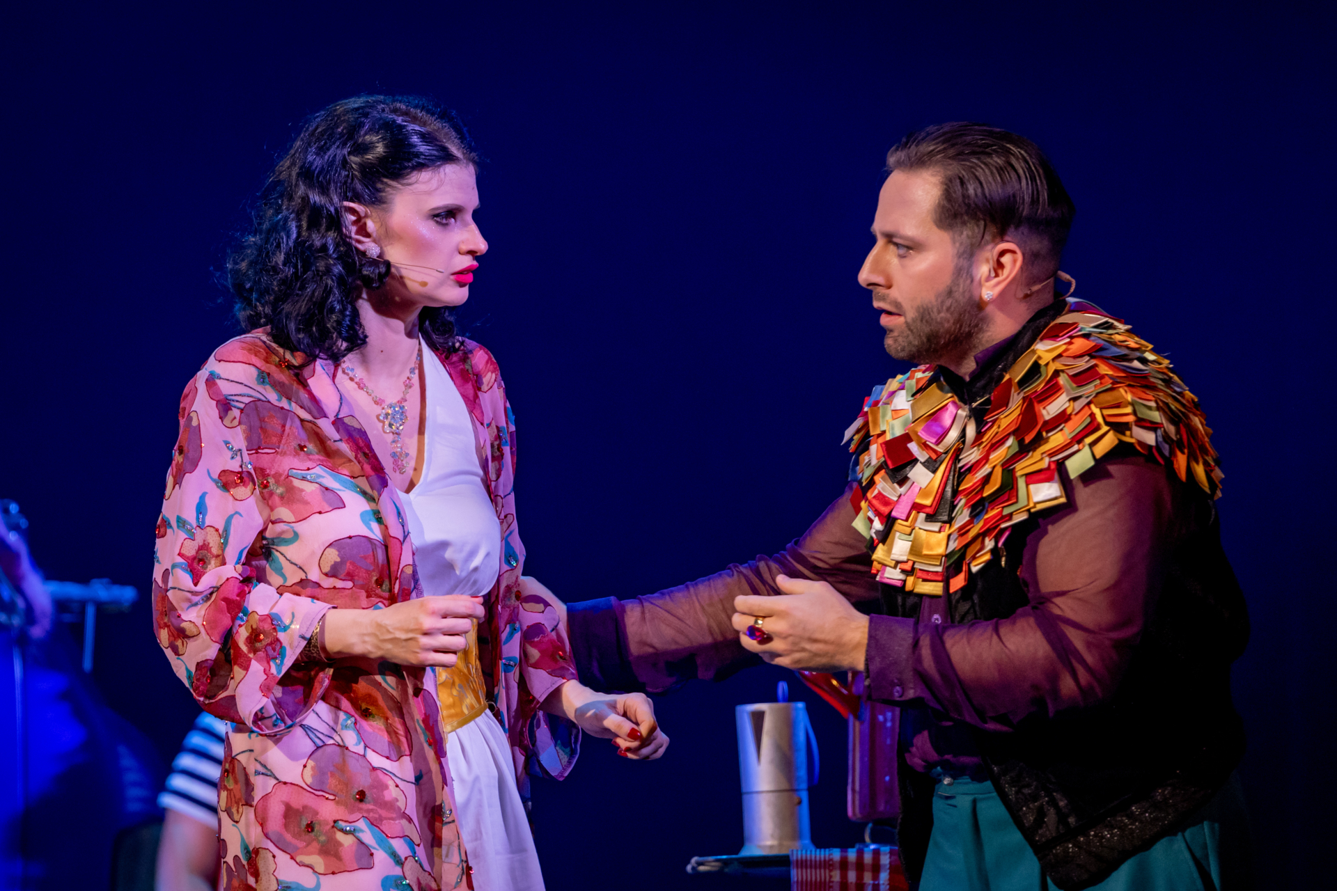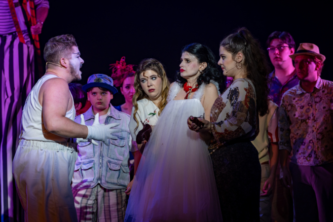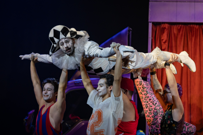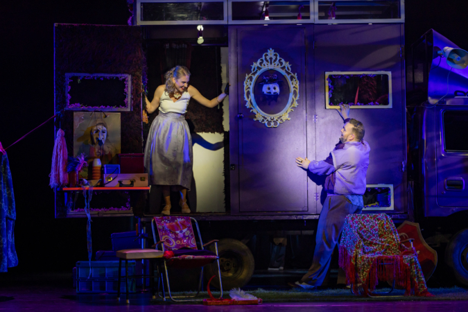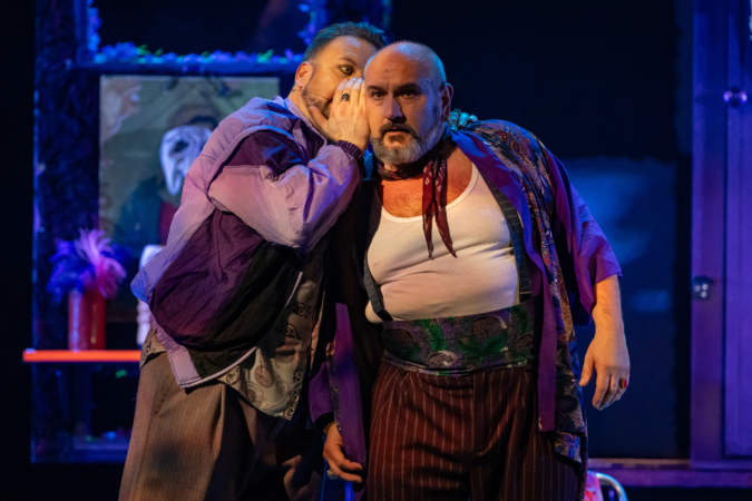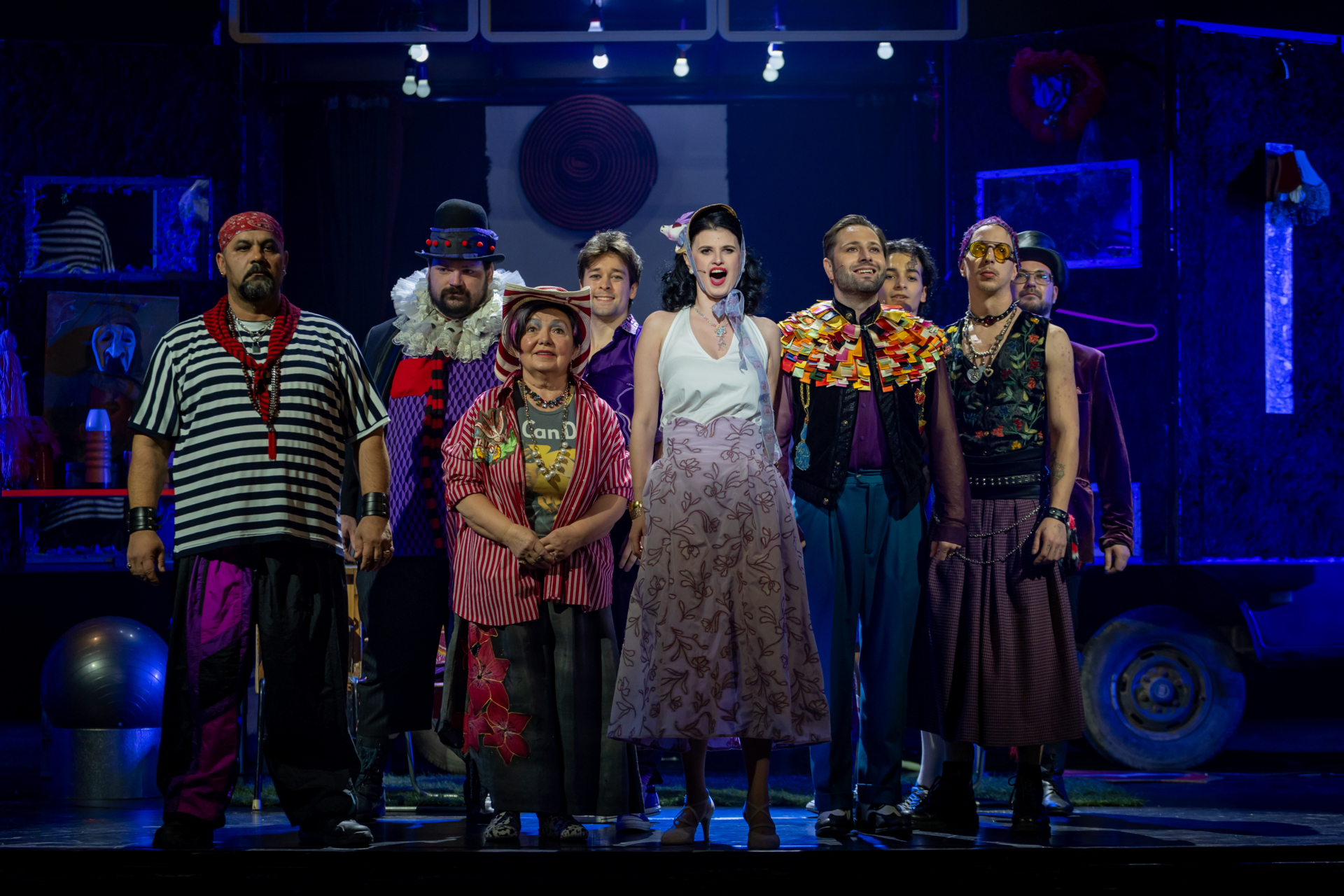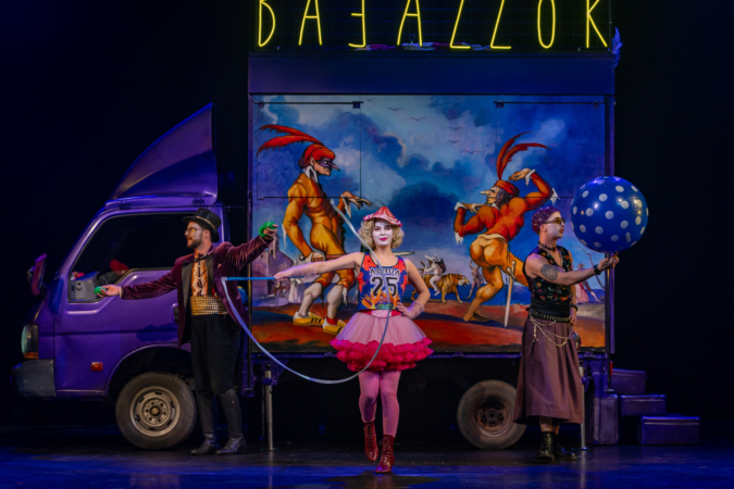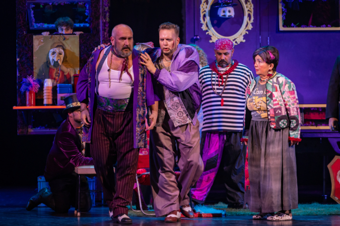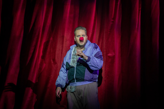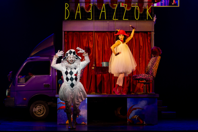 Mindenki lázasan készülődik, a nézők már türelmetlenül várják, hogy végre kezdetét vegye a produkció. A commedia dell’arte stílusú előadás cselekménye szerint Bajazzó felesége, Colombina és Arlekin titkon egymáséi, de Tádé is vágyik a nőre.