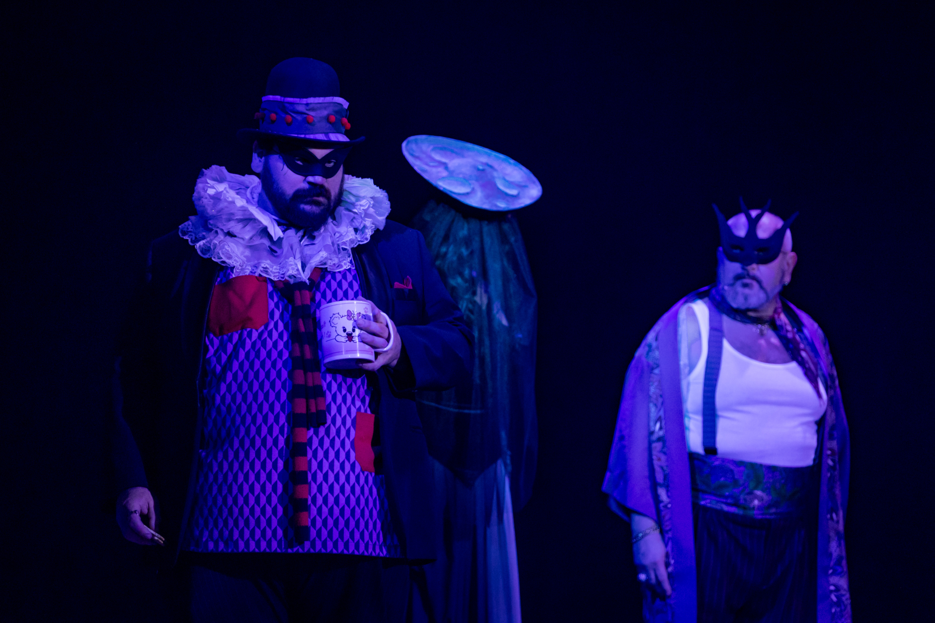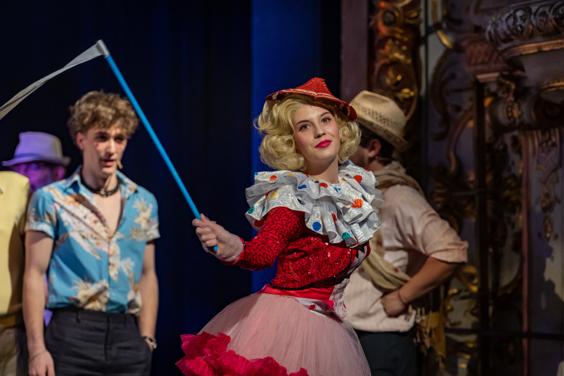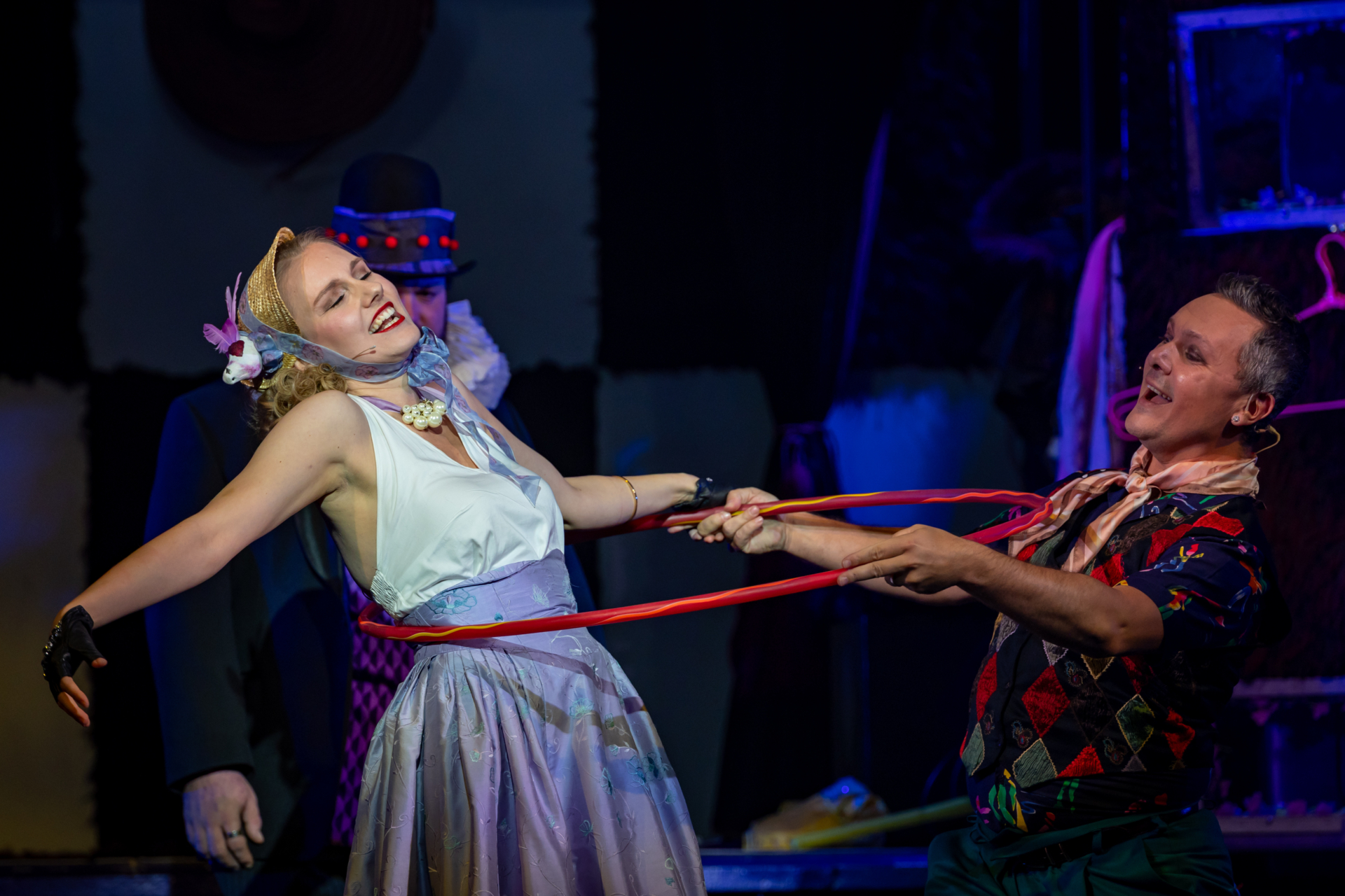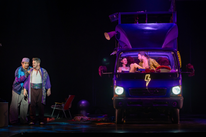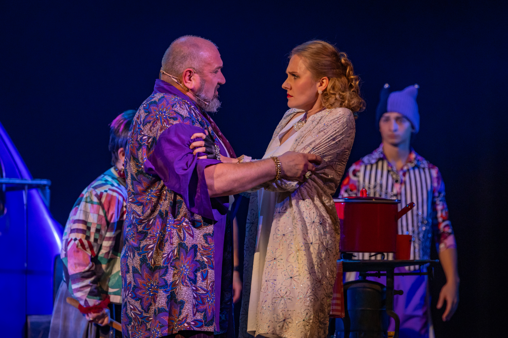 Mindenki lázasan készülődik, a nézők már türelmetlenül várják, hogy végre kezdetét vegye a produkció. A commedia dell’arte stílusú előadás cselekménye szerint Bajazzó felesége, Colombina és Arlekin titkon egymáséi, de Tádé is vágyik a nőre.