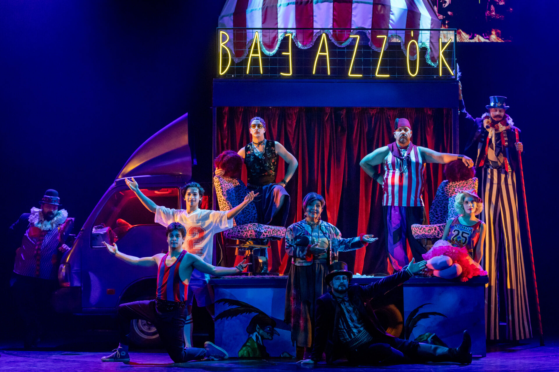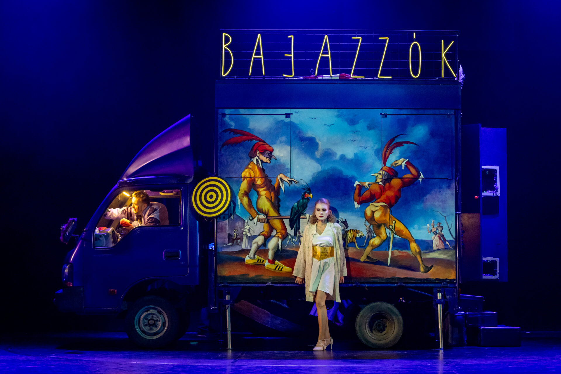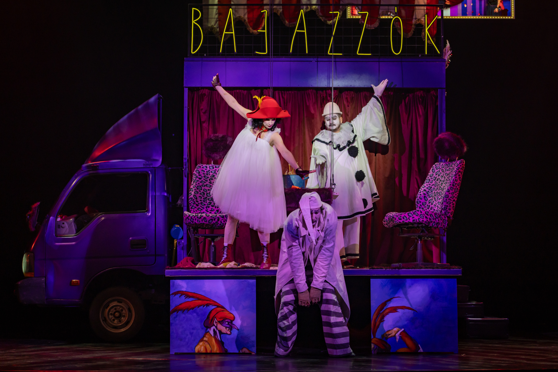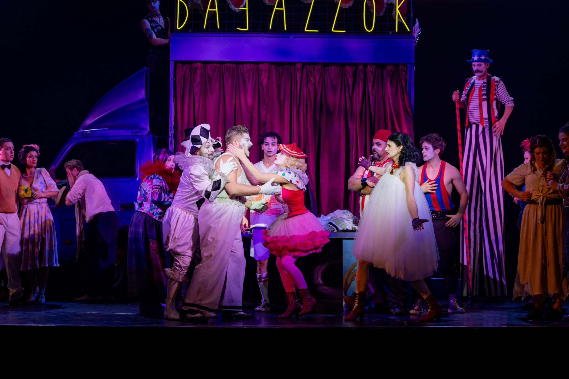 A közönség nevetve figyeli, ahogy a társulat komédiázik a megcsalt férjről, ám a játék lassan átalakul valósággá. A Bajazzó szerepét alakító Canio a szerep és a saját érzései közötti harcban elveszti önuralmát, és követelni kezdi, hogy Nedda vallja be, ki a szeretője. A nézők eleinte azt hiszik, ez is a szerep része, ám a hangulat végleg megváltozik, amikor Canio valódi dühe megfékezhetetlenné válik. Innen már csak pár hang, és a komédiának vége.
