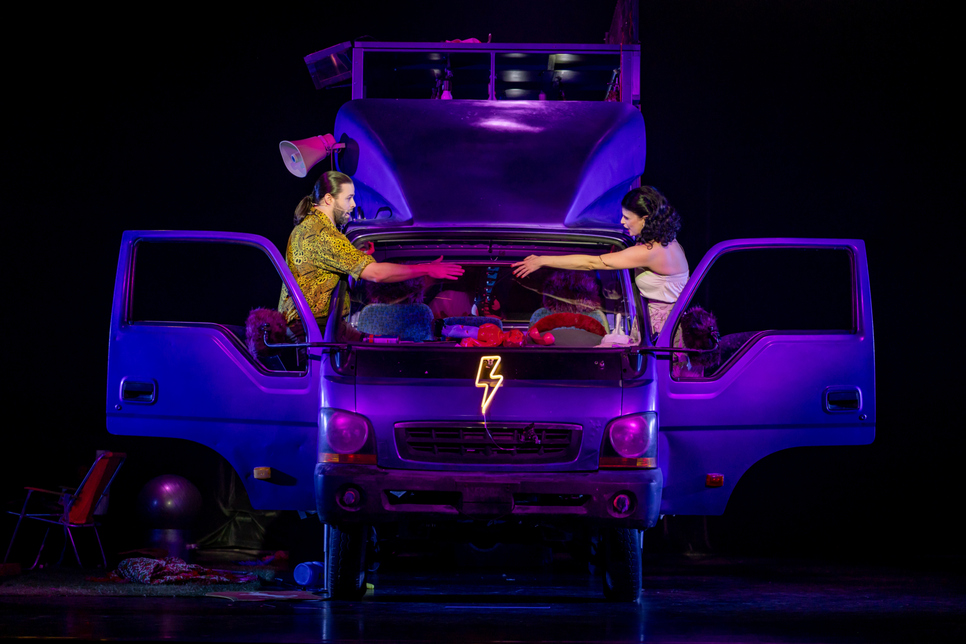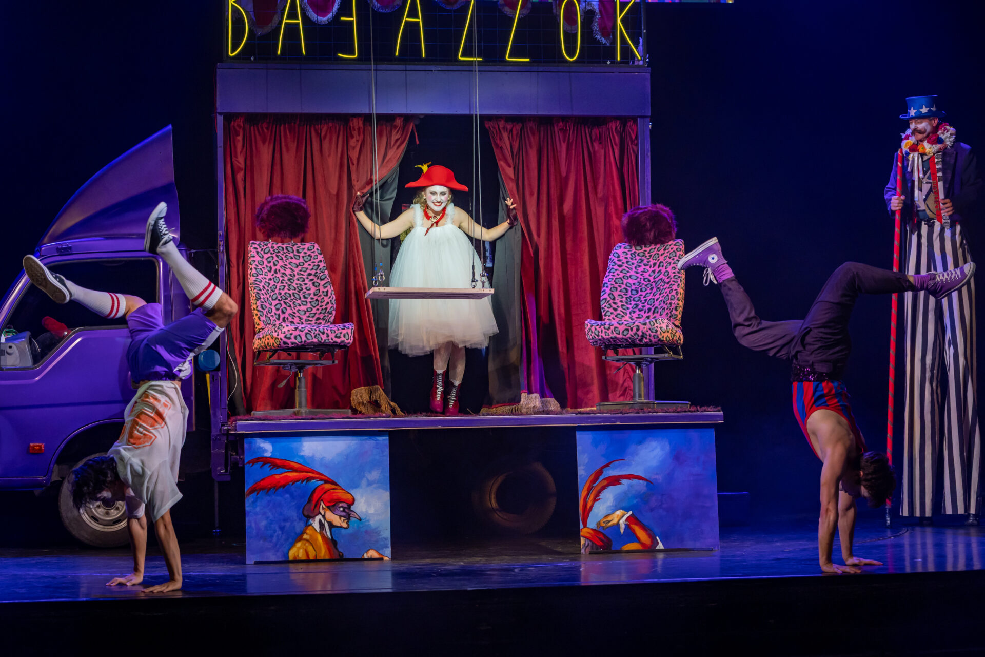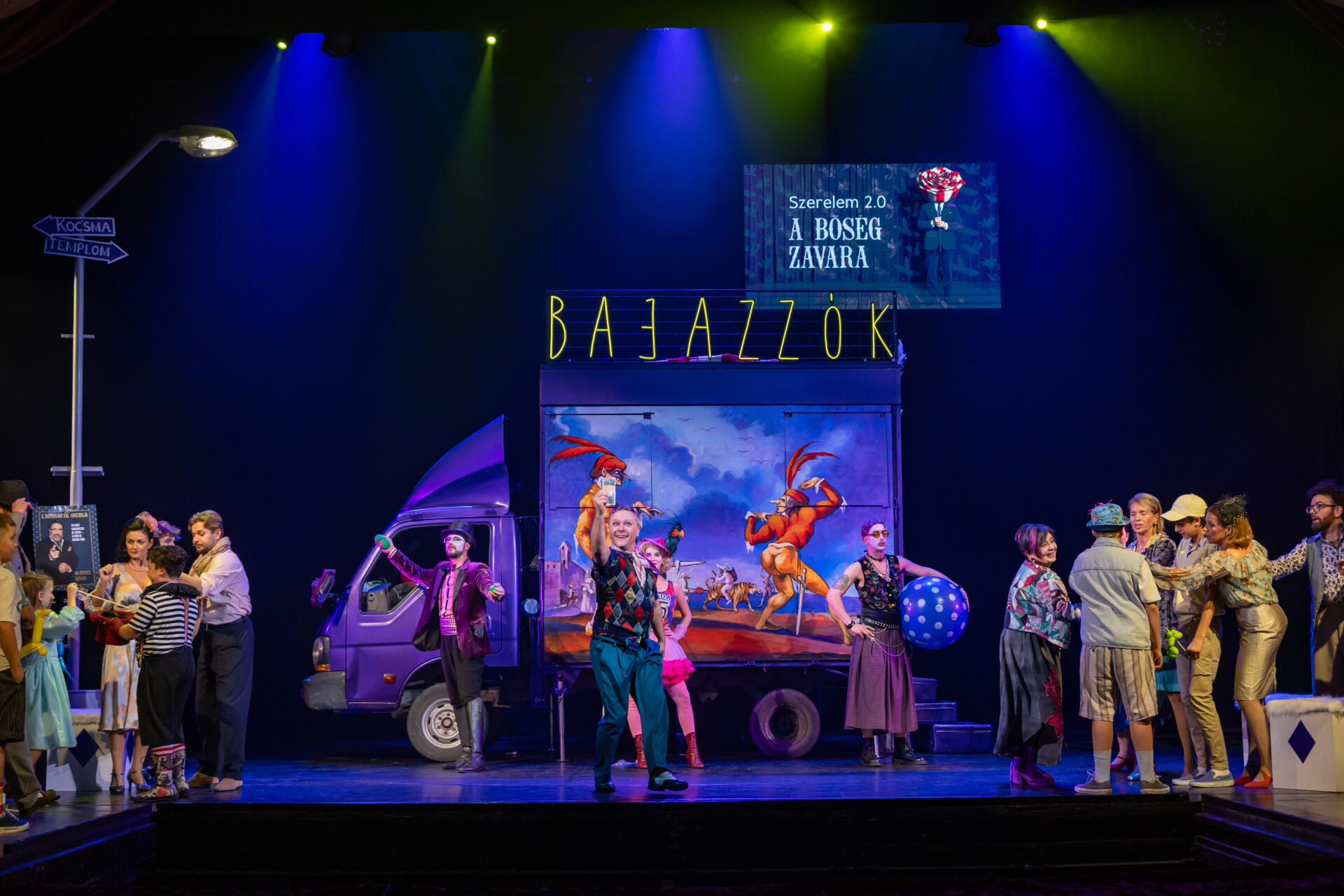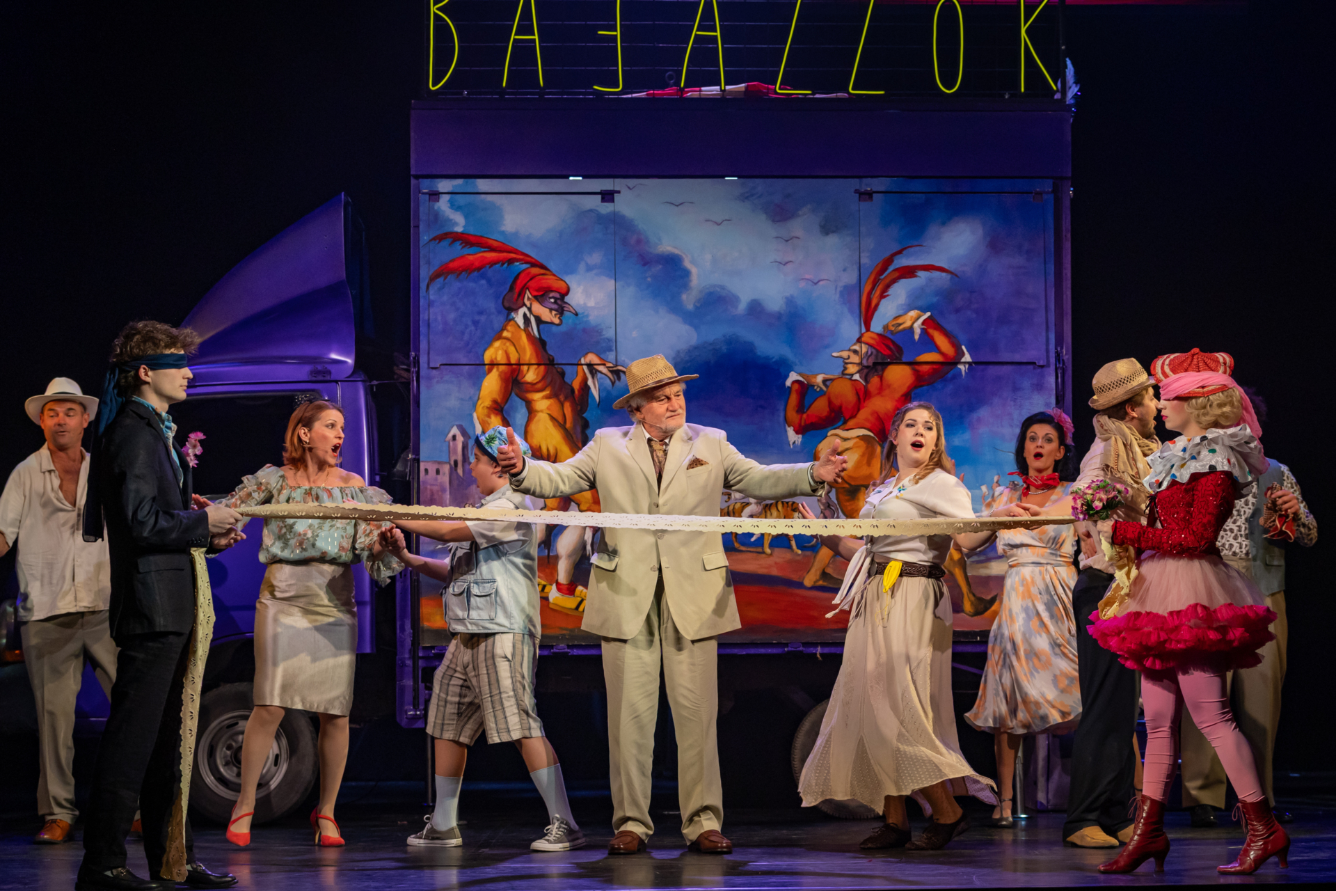 A közönség nevetve figyeli, ahogy a társulat komédiázik a megcsalt férjről, ám a játék lassan átalakul valósággá. A Bajazzó szerepét alakító Canio a szerep és a saját érzései közötti harcban elveszti önuralmát, és követelni kezdi, hogy Nedda vallja be, ki a szeretője. A nézők eleinte azt hiszik, ez is a szerep része, ám a hangulat végleg megváltozik, amikor Canio valódi dühe megfékezhetetlenné válik. Innen már csak pár hang, és a komédiának vége.