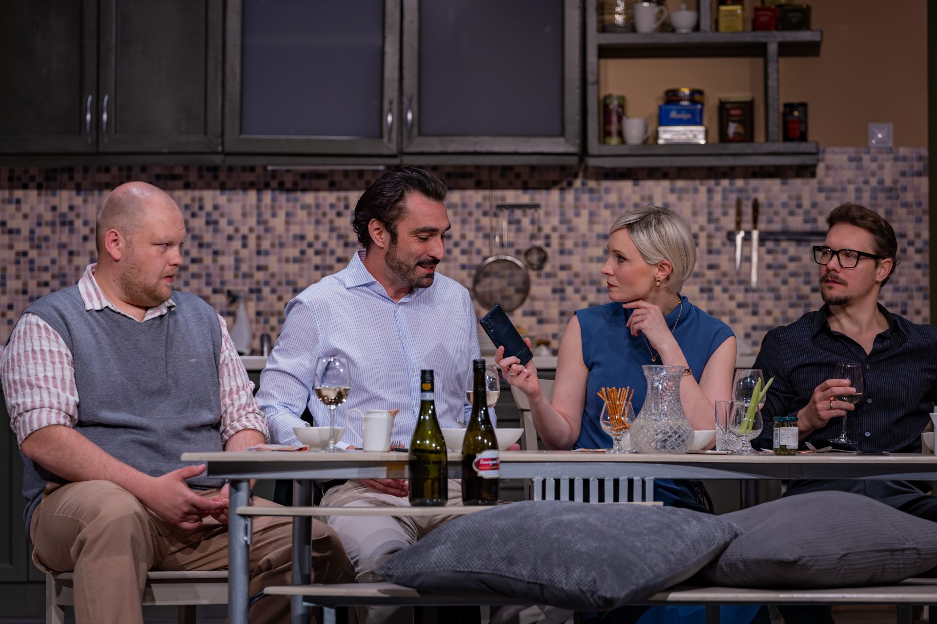 Mi történne, ha egy vacsoraestén minden jelenlévőnek ki kellene tennie a telefonját az asztalra, és minden üzenetet, hívást, titkot meg kellene osztania a többiekkel? Paolo Genovese zseniális alapötlete ezen az egyszerű kérdésen keresztül vezet be minket a Teljesen idegenek világába – egy estére, ahol a barátokból idegenek, a hazugságokból igazságok, a poénból pedig kínos csendek lesznek. A film világsikerét követően most testközelből élhetjük át ezt a feszült, mégis humorral átszőtt társasjátékot, ahol a látszat mögött megbújó emberi drámák és titkok fokozatosan bomlanak ki. A Teljesen idegenek színpadi változata nem csupán egy szórakoztató előadás, hanem tükör is: mit rejtenek a saját mobiljaink, és vajon mi magunk hány titkot bírnánk elviselni – másokét vagy a sajátunkat?